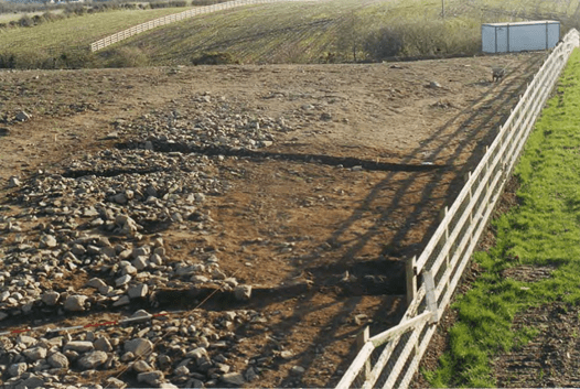 The site of Balregan, Co. Louth comprised a double-ditched enclosure situated on a low knoll at the confluence of two rivers, with extensive views in all directions. The site was found during road construction and was excavated by Brian O’Donnachada for IAC Archaeology. Full excavation results are published in Around the Bay of Dundalk: archaeological investigations along the route of the M1 Dundalk Western Bypass.